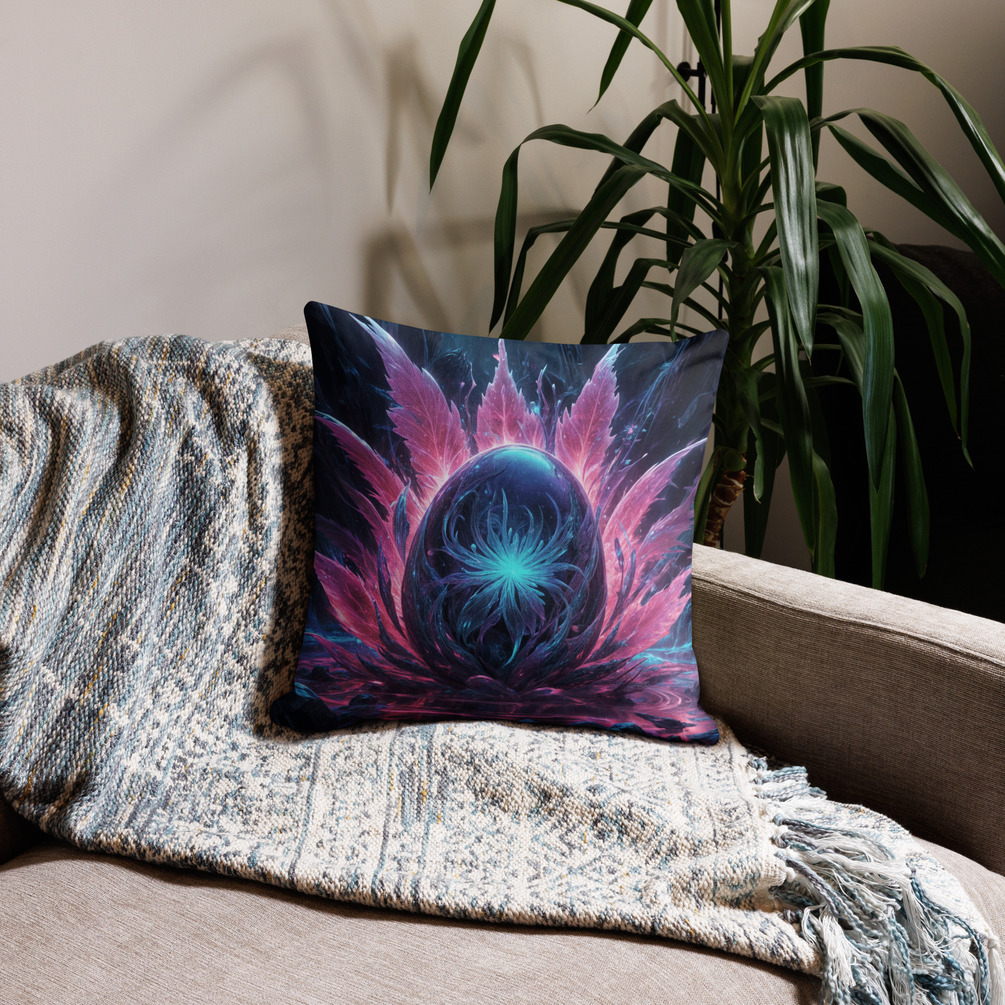 Add a touch of celestial wonder to your home decor with the Nebula Dreamscape Premium Pillow. Featuring a stunning all-over print of a radiant cosmic egg encased in ethereal pink and blue hues, this pillow is the perfect accent piece for any space. Whether you’re looking to spruce up your living room, bedroom, or any cozy corner, this premium pillow combines comfort and style, making it an ideal addition to your home.